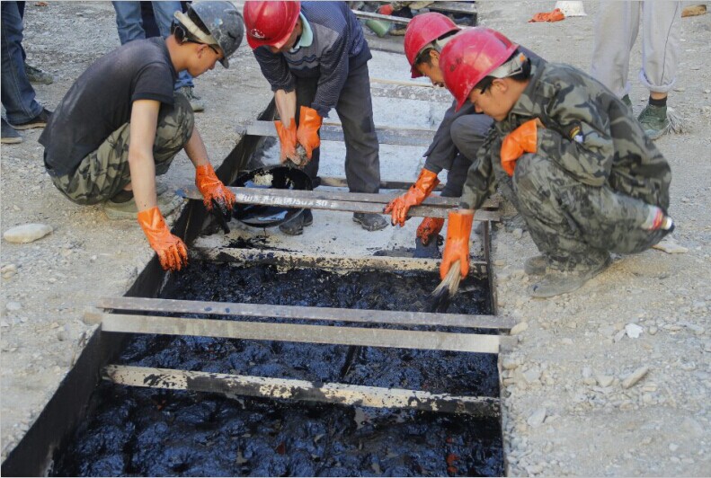 據了解,已完成壩體下游延伸段過(guò)渡料3200m3、反濾料88m3的填筑,現階段開(kāi)始大壩瀝青混凝土心墻填筑施工,從心墻砼面鑿毛、清理,到定位放線(xiàn)架設模板,對瀝青心墻基巖面冷底子油、瑪蹄脂的均勻涂刷,到最后瀝青心墻的第一層澆筑。這是關(guān)系大壩防滲效果的關(guān)鍵、也是核心部位,標志著(zhù)工程建設進(jìn)入了一個(gè)新階段,將為后續工程的施工奠定堅實(shí)基礎。