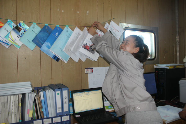 此工程處戈壁荒蕪地區,遂項目部采用的移動(dòng)板房,夏日酷暑,板房中更加悶熱,但絲毫沒(méi)有減弱該項目部的學(xué)習熱情,進(jìn)入板房首先映入眼簾的是該項目部的學(xué)習園地,據該項目部核算員陶一蘭介紹,“我們這里條件雖然艱苦,但是大家仍在工作之余,多學(xué)習、多充電、響應“文化引領(lǐng)書(shū)香北方”活動(dòng)。