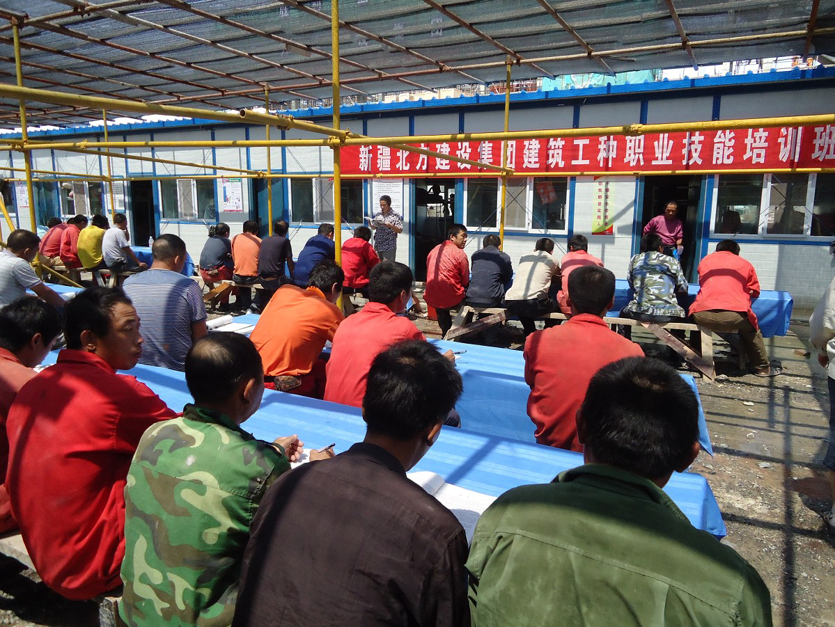北方建設集團把關(guān)愛(ài)勞務(wù)工作為培訓工作的落腳點(diǎn),堅持以安全為主、以提高工程施工質(zhì)量抓手,抓住工程建設集中開(kāi)工,大量建筑工人集中作業(yè)的時(shí)機,及時(shí)開(kāi)展建筑工專(zhuān)業(yè)技能培訓。為了不影響建筑工人的工作時(shí)間,公司利用雨休或高溫休息時(shí)間適時(shí)組織培訓。