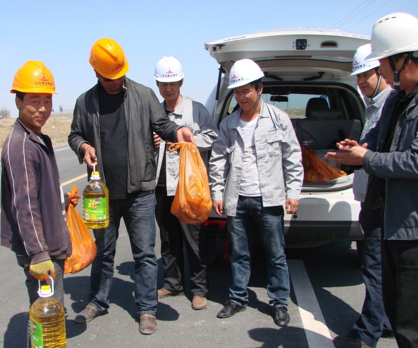 4月29日上午艷陽(yáng)高照,北方建設集團電氣設備安裝公司黨支部和工會(huì ),在“五一勞動(dòng)節”來(lái)臨的前夕,帶著(zhù)分公司全體管技人員的關(guān)心和問(wèn)候,把清油、豬肉等慰問(wèn)品送到節日期間仍堅持奮戰在施工一線(xiàn)的工人和勞務(wù)工的手里。(楊翠萍)