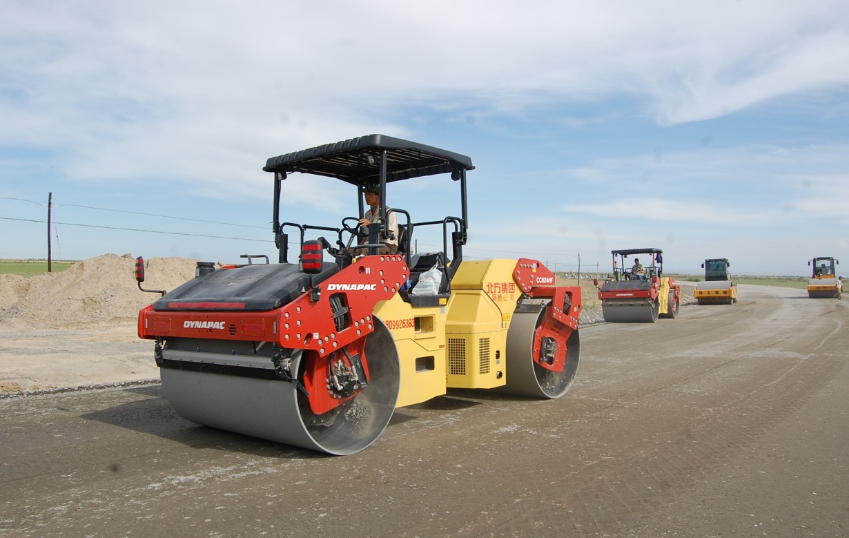 施工機械正在碾壓施工