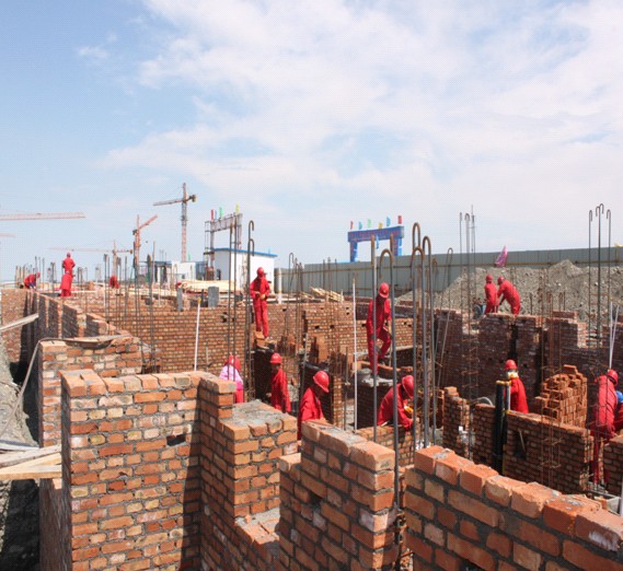 6月26日上午,在獨山子眾鑫房產(chǎn)盤(pán)錦路東經(jīng)濟適用房小區16#、19#、22#和25#住宅樓的施工現場(chǎng)中,筆者見(jiàn)到施工人員們分別在支模板、綁鋼筋、砌磚塊等不同的施工進(jìn)行中,原來(lái),這里正在舉行熱火朝天的創(chuàng )先爭優(yōu)勞動(dòng)競賽活動(dòng)。 為了及時(shí)兌現保證四棟住宅樓的主體在8月30日完工,11月15號全部交工的承諾,工區黨支部精心組織施工隊伍,在四棟樓房項目之間進(jìn)行了“比安全、比質(zhì)量、比進(jìn)度、比成本、比貢獻、爭當第一”的五比一爭...